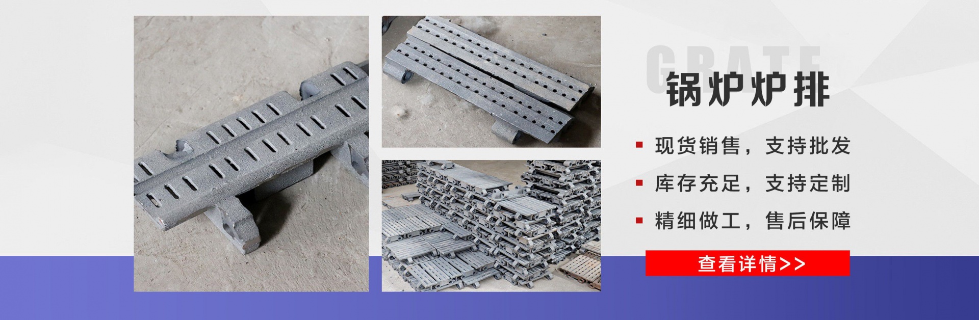 麗新機械配件廠位于“江北水城”之稱的聊城。公司主要銷售:鍋爐爐門,爐篦子,爐排片,鍋爐爐排,省煤器管,鍋爐風帽,鍋爐配件等多種產品,公司堅持以市場為導向、以誠實守信為經營理念,竭誠為廣大客戶服務!  爐排是鍋爐或工業爐中堆置固體燃料并使之有效燃燒的部件。整個爐排主要包括框架和爐排片兩個部分。爐排片通常用鑄鐵制造,組裝后片與片之間保持必要的通風縫隙,并且往往還在爐排下邊設置可以調節風量的分隔的通風室,以便空氣通過縫隙進入燃料層燃燒。燒盡后的灰渣用人工或機械方法排出。爐排有固定式、移動式、往復式、振動式和下飼式等類型?! ″仩t爐排操作實現了機械化,減輕了司爐工的勞動強度??煅b出廠,到使用現場后,裝接閥門儀表,鼓、引風機、煙風管道、省煤器、除塵器、出渣機。上煤機及水電路等即可運行,且具有起動生火快等特點。  公司憑借豐富的規格品種,過硬的質量,合理的價格,完善的服務,不斷地受到新老用戶及業內人士的肯定和信任,我們本著及用戶之所及,想用戶之所想的服務宗旨不斷地拼搏,進取,在此對多年來支持我們的各行各業的新老朋友表示由衷的感謝!  我公司的理念:“誠信、合作、互利、雙贏”!以最大的努力滿足客戶的需求。...